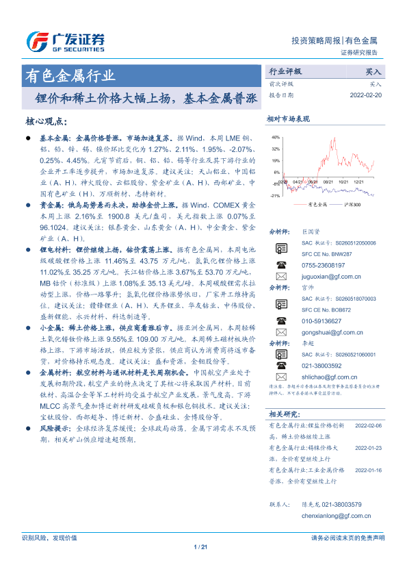【广发证券】【20220220】20220220-广发证券-有色金属行业投资策略周报:锂价和稀土价格大幅上扬,基本金属普涨-21页