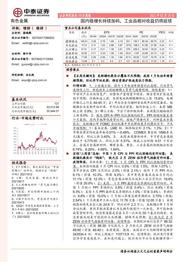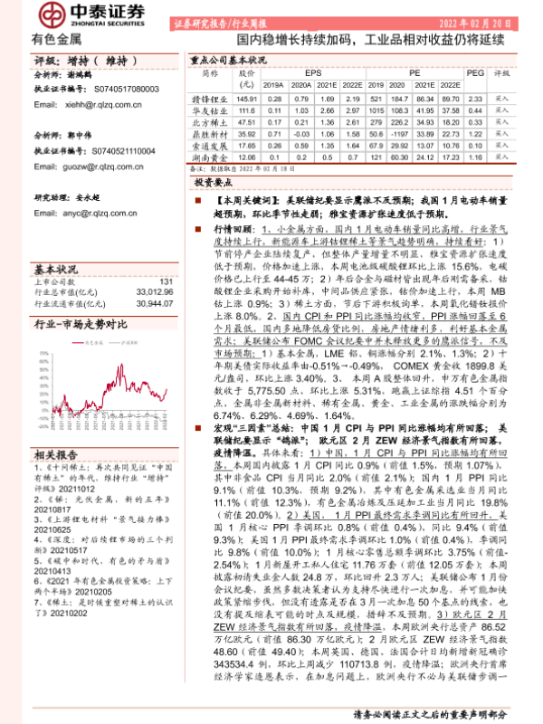 【中泰证券】【20220220】20220220-中泰证券-有色金属:国内稳增长持续加码,工业品相对收益仍将延续-43页
