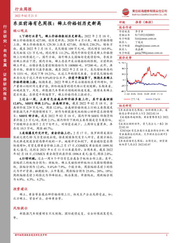 【东亚前海证券】【20220221】东亚前海有色周报:稀土价格创历史新高-22页