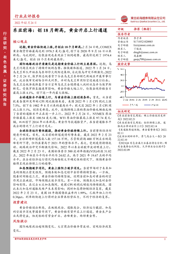 【东亚前海证券】【20220224】东亚前海证券-有色金属:创18月新高,黄金开启上行通道-3页