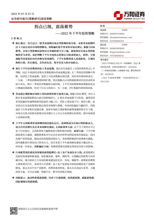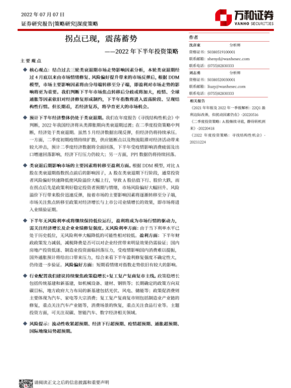【万和证券】【20220707】2022年下半年投资策略:拐点已现,震荡蓄势-28页