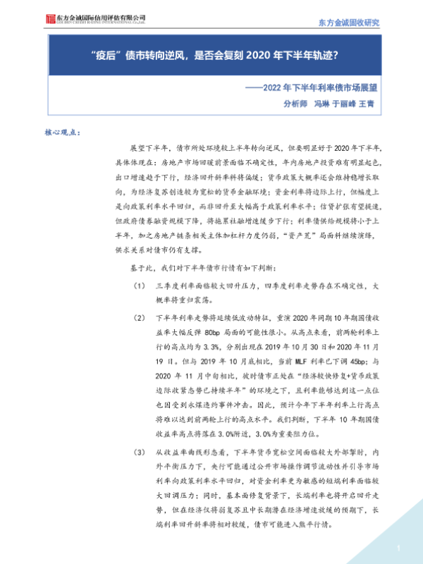 【东方金诚】【20220707】2022年下半年利率债市场展望:“疫后”债市转向逆风,是否会复刻2020年下半年轨迹?-18页