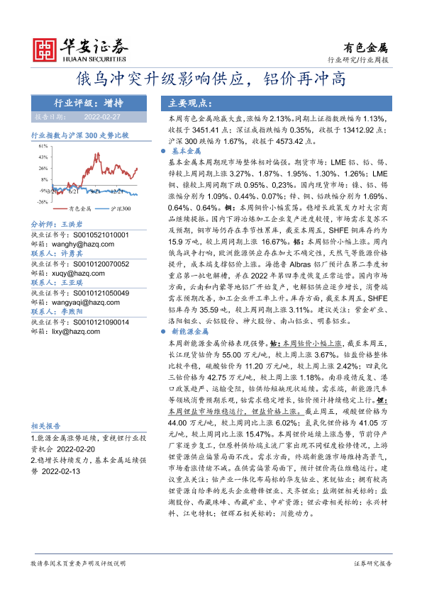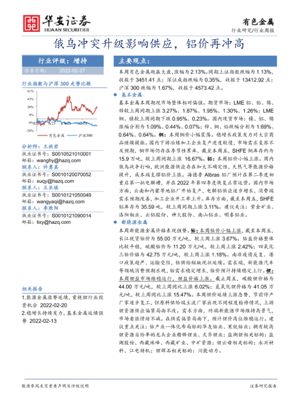 【华安证券】【20220227】20220227-华安证券-有色金属行业周报:俄乌冲突升级影响供应,铝价再冲高-16页