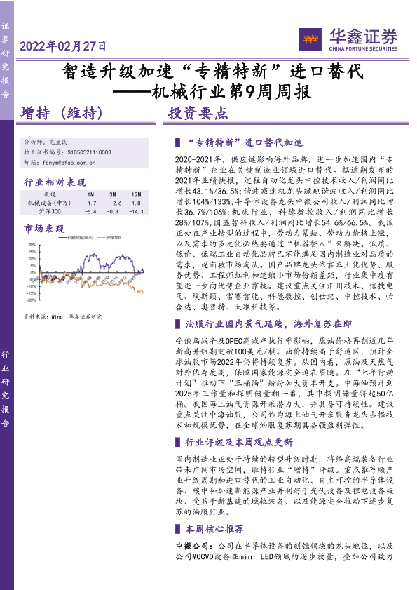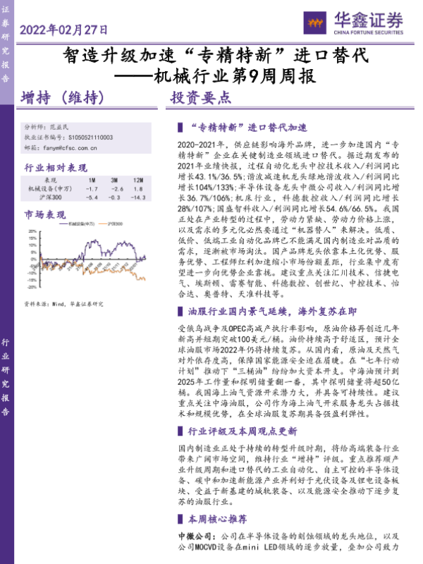 【华鑫证券】【20220227】智造升级加速“专精特新”进口替代 ——机械行业第9周周报-26页