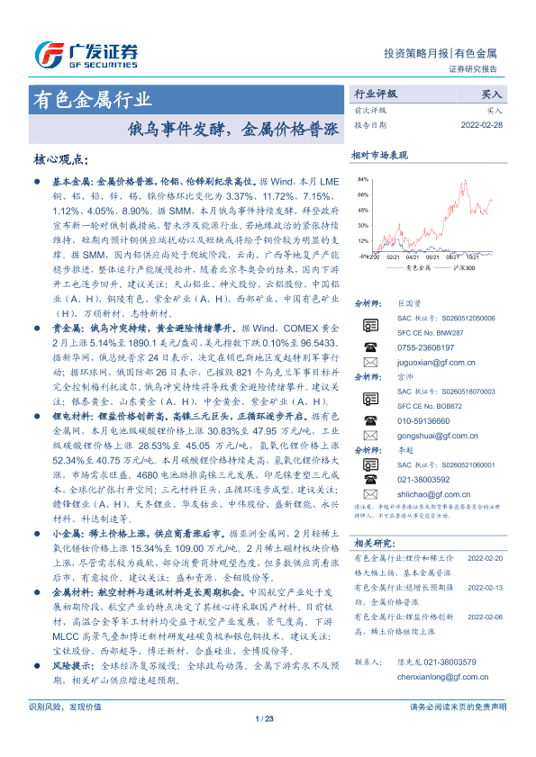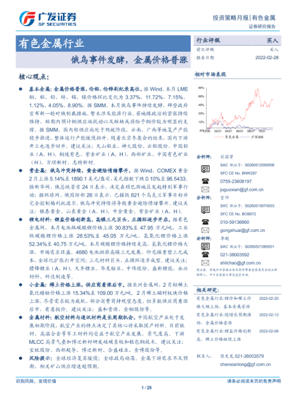 【广发证券】【20220228】20220228-广发证券-有色金属行业投资策略月报:俄乌事件发酵,金属价格普涨-23页