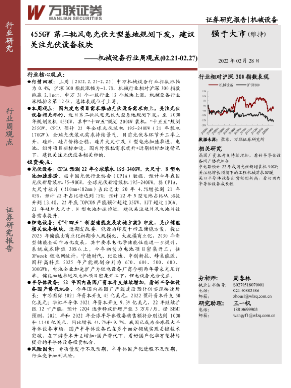 【万联证券】【20220228】20220228-万联证券-机械设备行业周观点:455GW第二批风电光伏大型基地规划下发,建议关注光伏设备板块-15页
