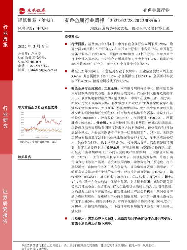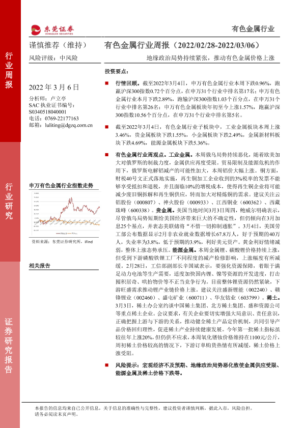 【东莞证券】【20220306】20220306-东莞证券-有色金属行业周报:地缘政治局势持续紧张,推动有色金属价格上涨-11页