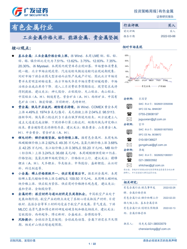 【广发证券】【20220306】20220306-广发证券-有色金属行业投资策略周报:工业金属价格大涨,能源金属、贵金属坚挺-22页