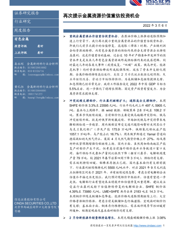 【信达证券】【20220306】20220306-信达证券-有色金属周度报告:再次提示金属资源价值重估投资机会-12页