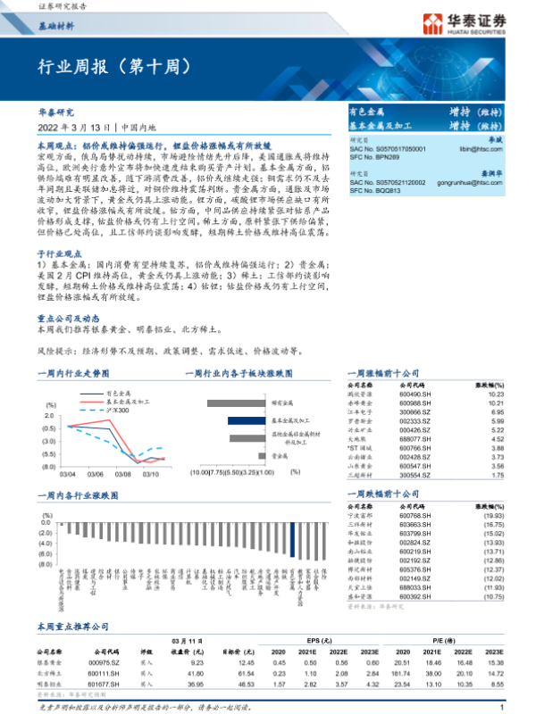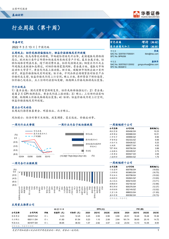 【华泰证券】【20220313】20220313-华泰证券-有色金属行业周报(第十周)-16页