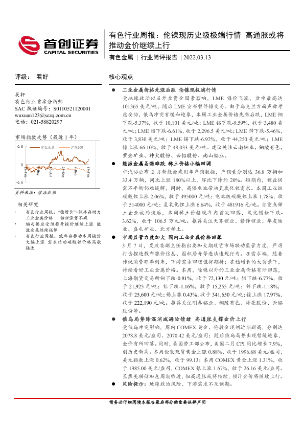 【首创证券】【20220313】20220313-首创证券-有色金属行业周报:伦镍现历史级极端行情 高通胀或将推动金价继续上行-11页