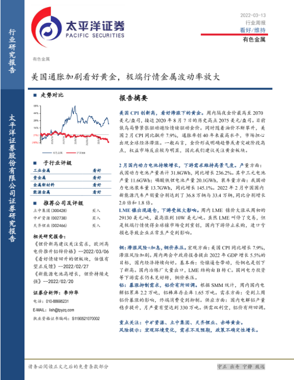 【太平洋证券】【20220313】20220313-太平洋-有色金属行业周报:美国通胀加剧看好黄金,极端行情金属波动率放大-16页
