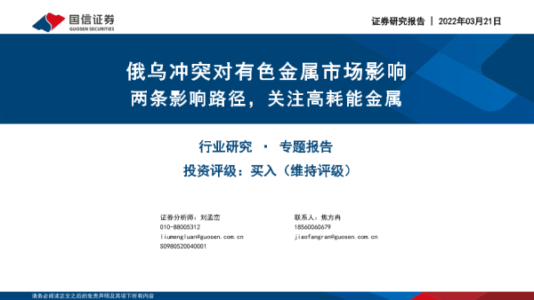 【国信证券】【20220321】20220321-国信证券-有色金属专题报告:俄乌冲突对有色金属市场影响 两条影响路径,关注高耗能金属-30页