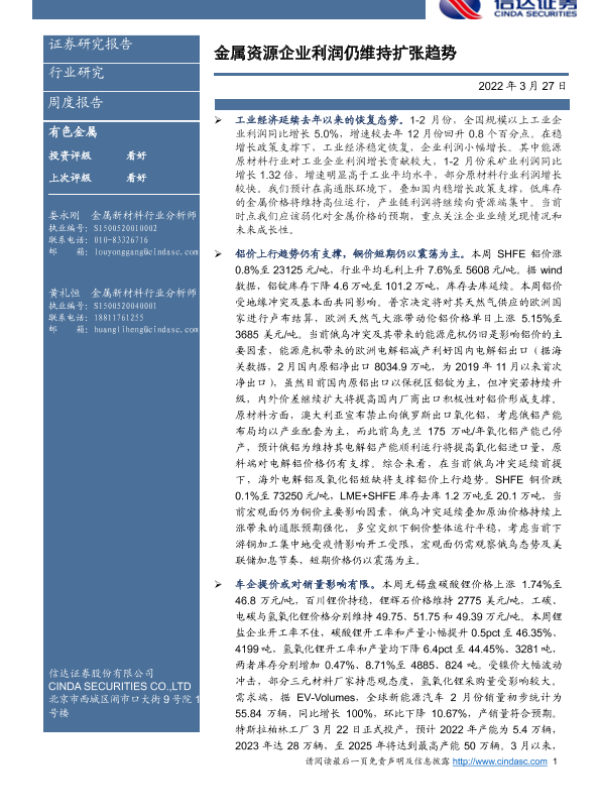 【信达证券】【20220327】金属资源企业利润仍维持扩张趋势-11页