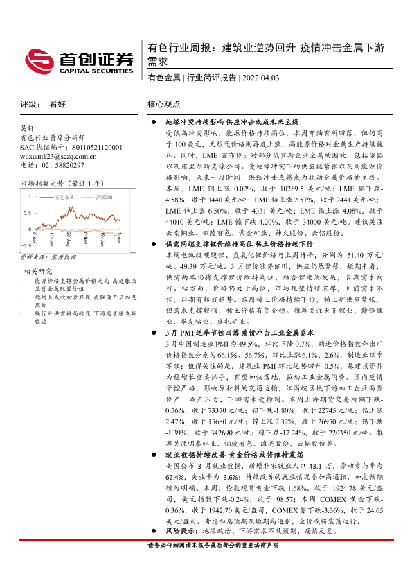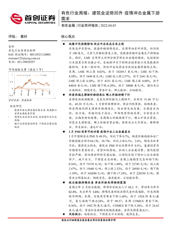 【首创证券】【20220403】20220403-首创证券-有色行业周报:建筑业逆势回升 疫情冲击金属下游需求-20页
