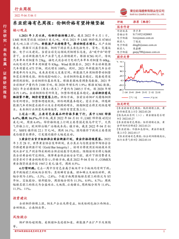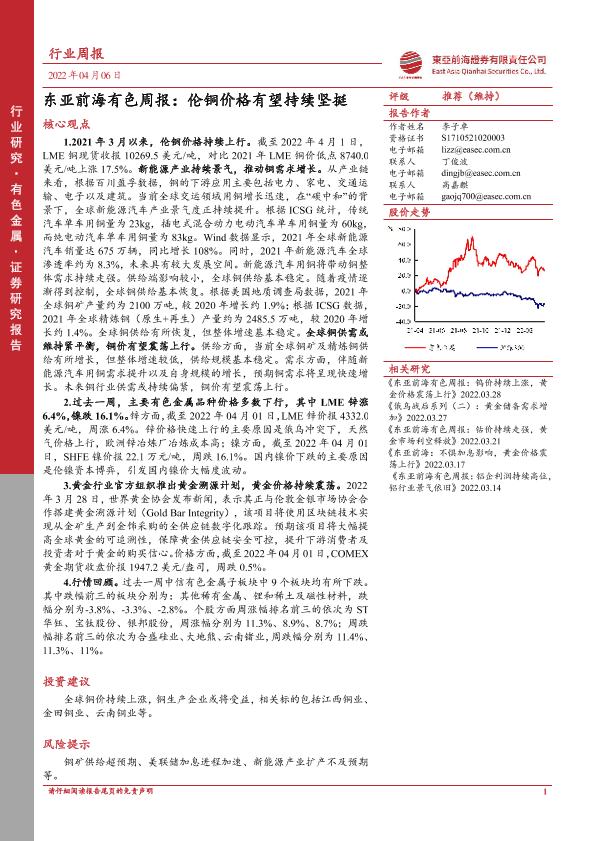 【东亚前海证券】【20220406】东亚前海有色周报:伦铜价格有望持续坚挺-21页