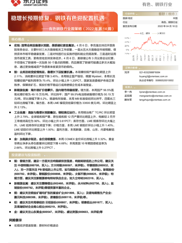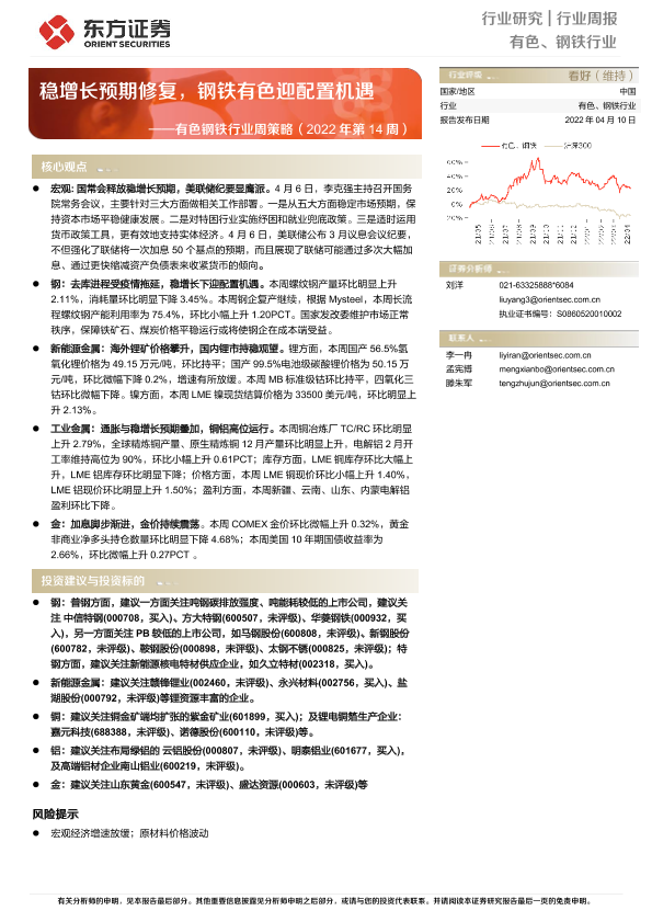 【东方证券】【20220410】有色钢铁行业周策略(2022年第14周):稳增长预期修复,钢铁有色迎配置机遇-37页