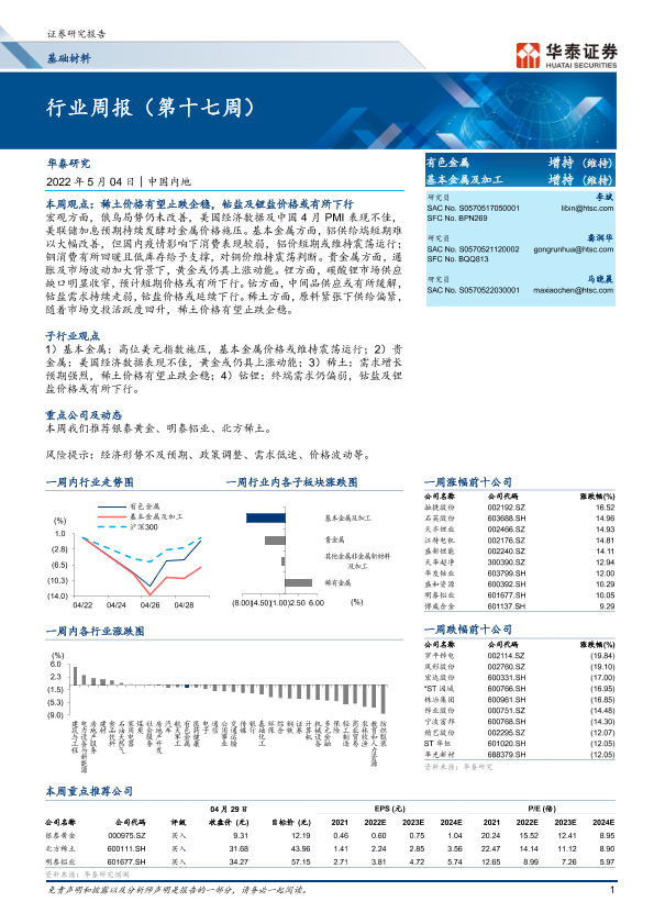 【华泰证券】【20220504】20220504-华泰证券-基础材料行业周报(第十七周)-26页