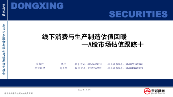 【东兴证券】【20220702】A股市场估值跟踪十:线下消费与生产制造估值回暖-23页