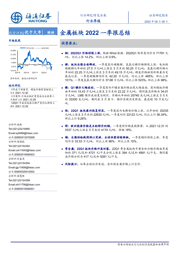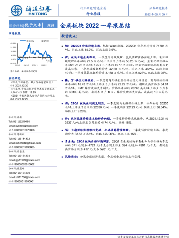 【海通证券】【20220509】20220509-海通证券-有色金属行业季报:金属板块2022一季报总结-14页