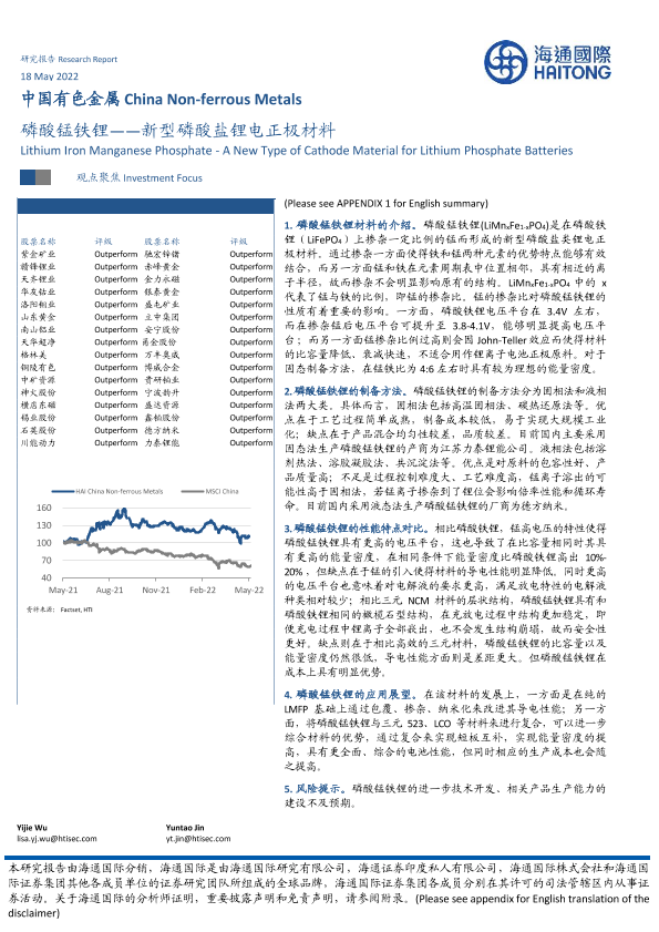 【海通国际】【20220518】中国有色金属:新型磷酸盐锂电正极材料-磷酸锰铁锂-12页
