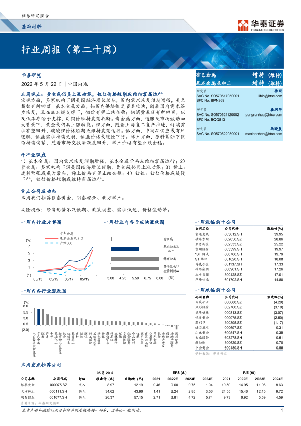【华泰证券】【20220522】20220522-华泰证券-基础材料行业周报(第二十周)-18页