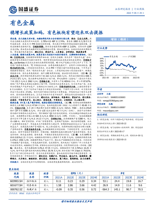 【国盛证券】【20220529】20220529-国盛证券-有色金属行业周报:稳增长政策加码,有色板块有望迎来双击提振-20页