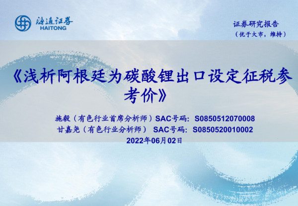 【海通证券】【20220602】浅析阿根廷为碳酸锂出口设定征税参考价-8页