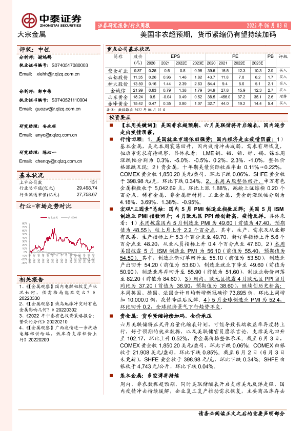 【中泰证券】【20220603】20220603-中泰证券-大宗金属行业周报:美国非农超预期,货币紧缩仍有望持续加码-25页