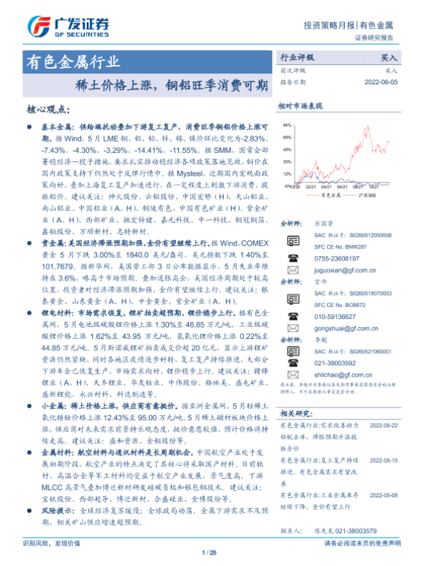 【广发证券】【20220605】20220605-广发证券-有色金属行业:稀土价格上涨,铜铝旺季消费可期-25页