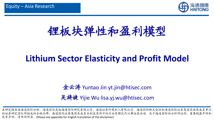 【海通国际】【20220607】锂板块弹性和盈利模型-24页