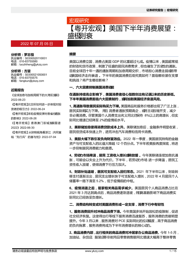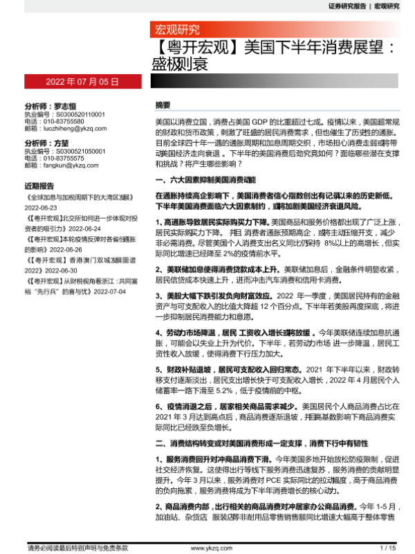 【粤开证券】【20220705】美国下半年消费展望:盛极则衰-15页