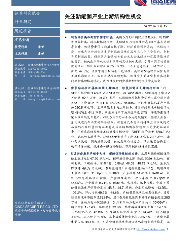 【信达证券】【20220612】20220612-信达证券-有色金属周度报告:关注新能源产业上游结构性机会-11页