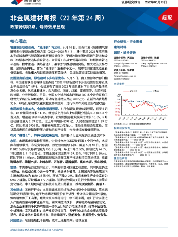 【国信证券】【20220613】非金属建材行业周报(22年第24周):政策持续积累,静待效果显现-20页