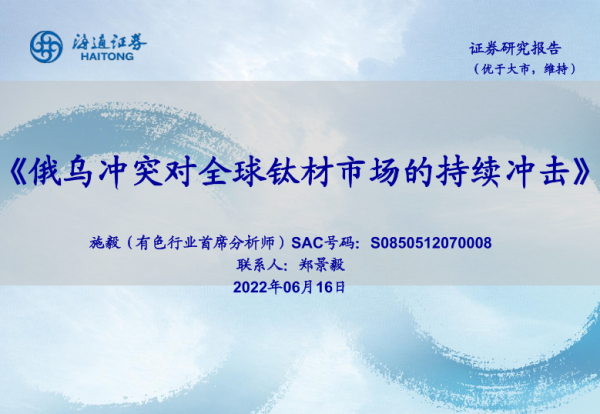 【海通证券】【20220616】俄乌冲突对全球钛材市场的持续冲击-5页