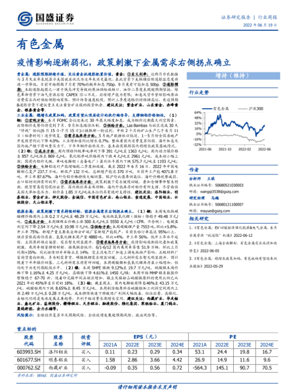 【国盛证券】【20220619】20220619-国盛证券-有色金属行业周报:疫情影响逐渐弱化,政策刺激下金属需求右侧拐点确立-21页