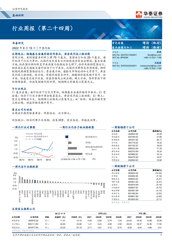 【华泰证券】【20220619】20220619-华泰证券-基础材料行业周报(第二十四周)-18页