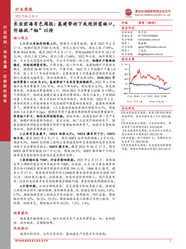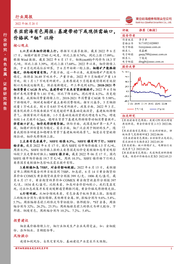 【东亚前海证券】【20220620】东亚前海有色周报:基建带动下或现供需缺口,价格拭“钼”以待-21页