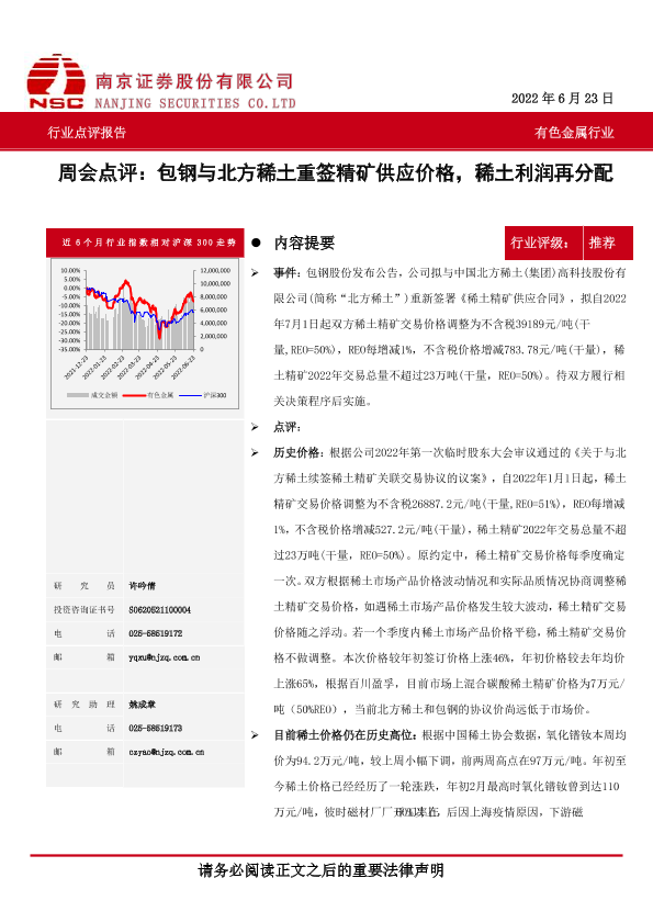 【南京证券】【20220623】20220623-南京证券-有色金属行业周会点评:包钢与北方稀土重签精矿供应价格,稀土利润再分配-3页