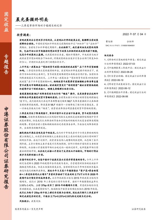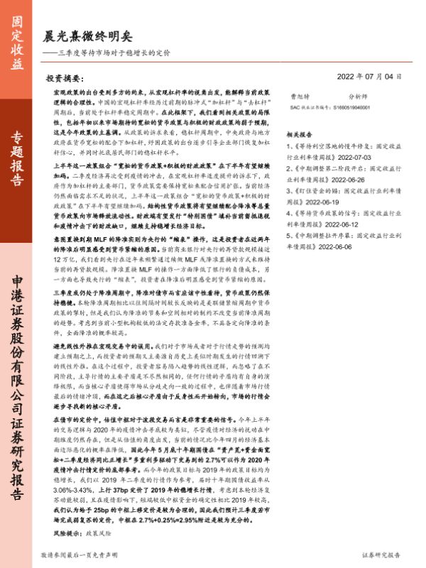 【申港证券】【20220704】三季度等待市场对于稳增长的定价:晨光熹微终明矣-17页