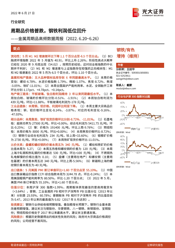 【光大证券】【20220627】金属周期品高频数据周报:周期品价格普跌,钢铁利润低位回升-26页