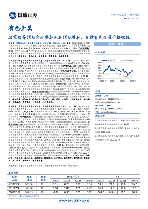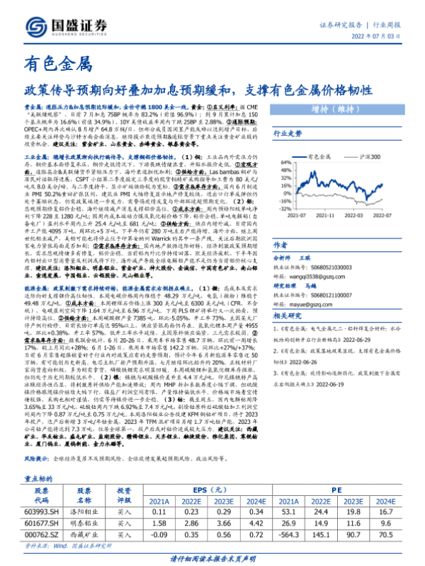 【国盛证券】【20220703】有色金属:政策传导预期向好叠加加息预期缓和,支撑有色金属价格韧性-21页