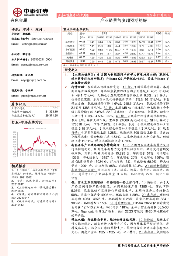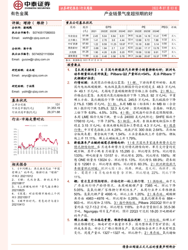 【中泰证券】【20220703】20220703-中泰证券-有色金属行业周报:产业链景气度超预期的好-25页