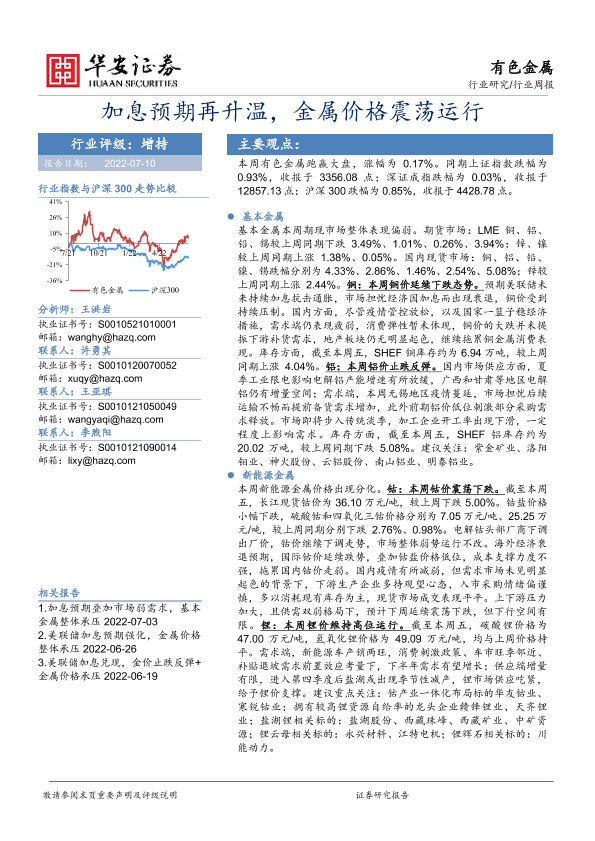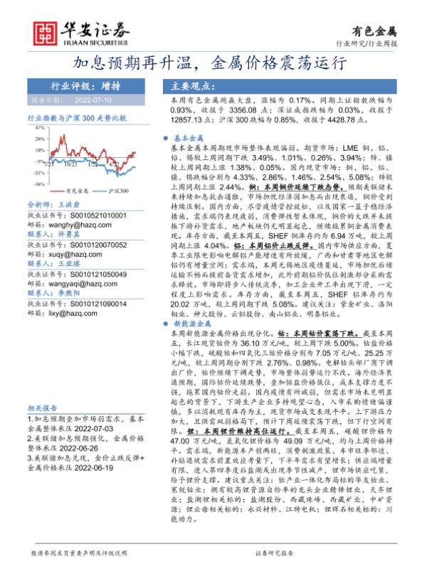 【华安证券】【20220710】20220710-华安证券-有色金属行业周报:加息预期再升温,金属价格震荡运行-16页