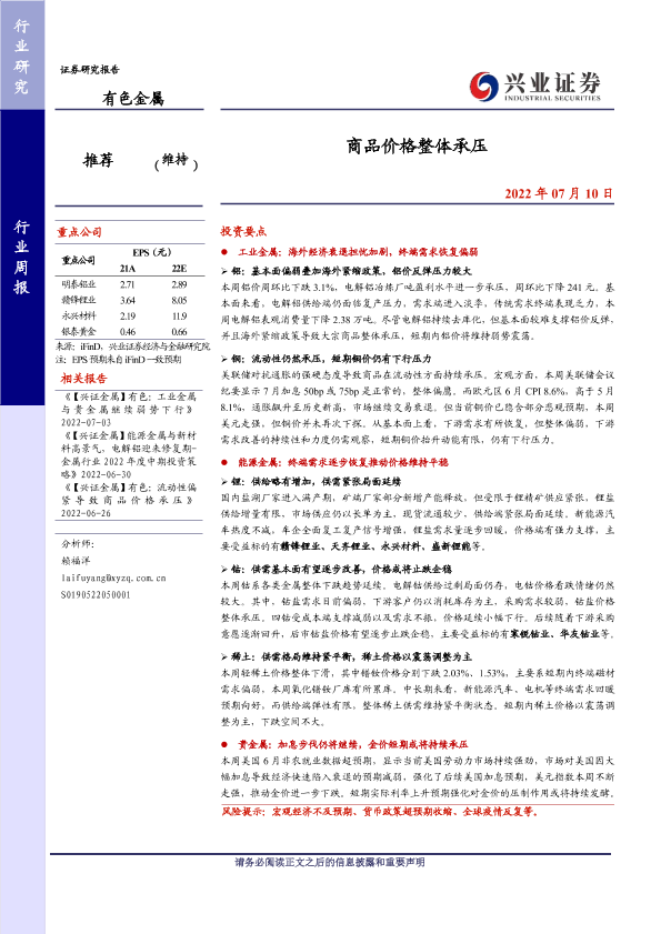 【兴业证券】【20220710】20220710-兴业证券-有色金属行业周报:商品价格整体承压-19页