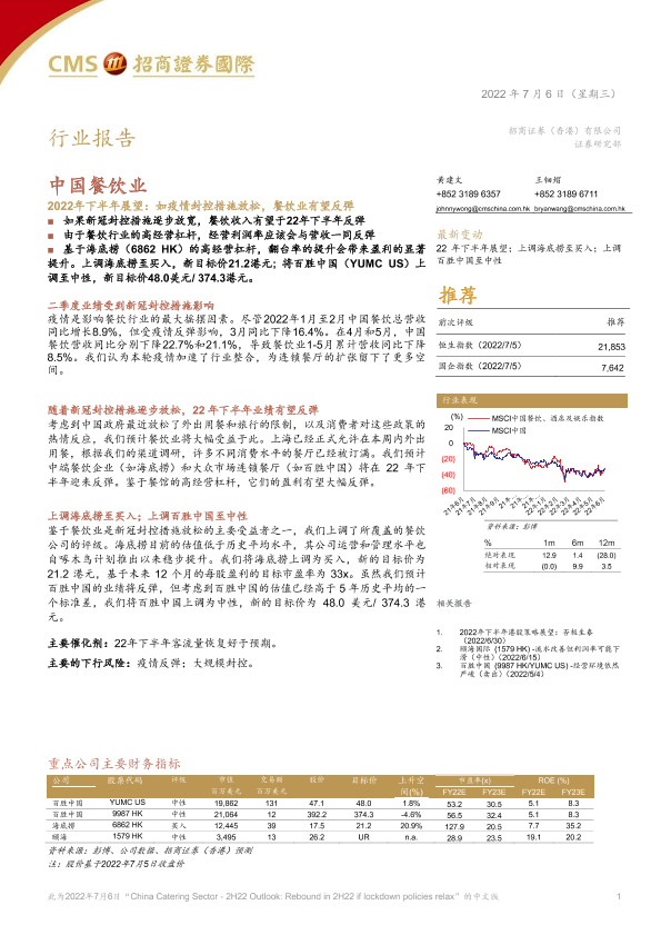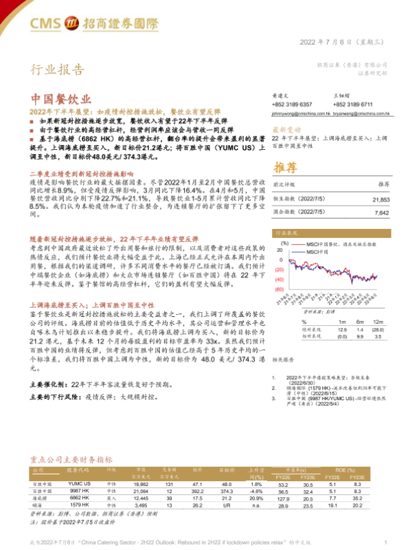 【招商证券国际】【20220706】中国餐饮业2022年下半年展望:如疫情封控措施放松,餐饮业有望反弹-16页