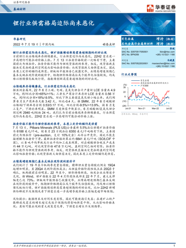 【华泰证券】【20220719】基础材料动态点评:锂行业供需格局边际尚未恶化-6页