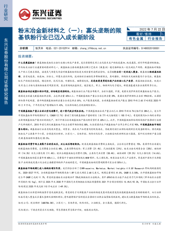【东兴证券】【20220722】寡头垄断的羰基铁粉行业已迈入成长新阶段-17页