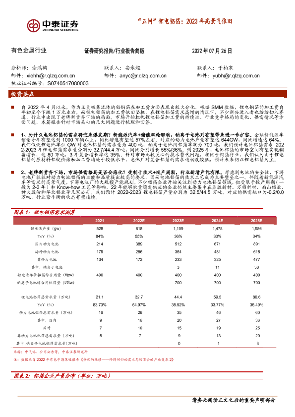 【中泰证券】【20220726】“五问”锂电铝箔:2023年高景气依旧-5页