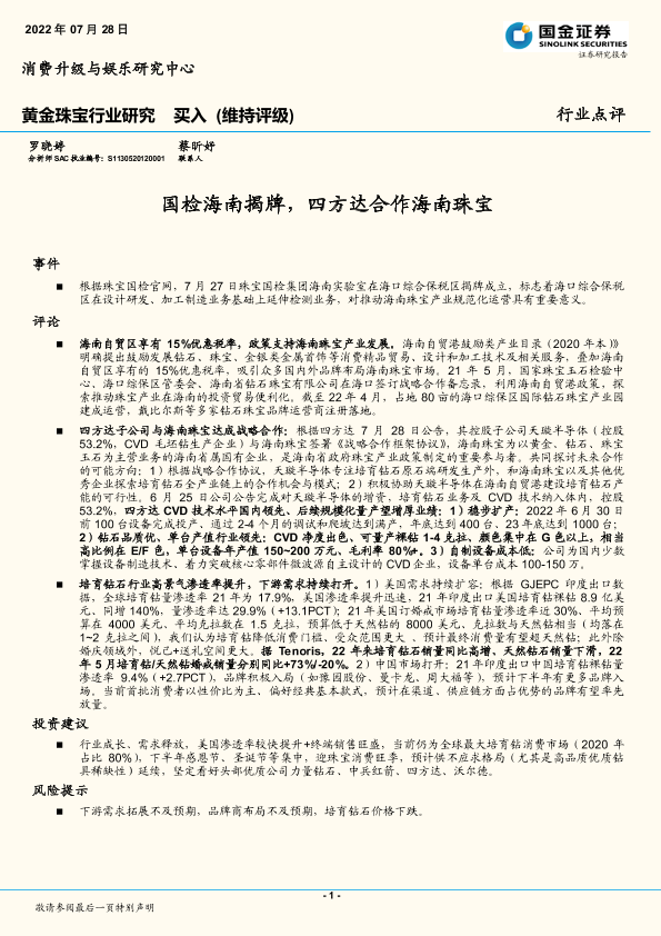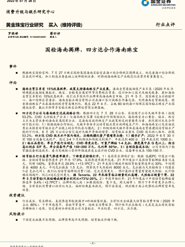 【国金证券】【20220728】国检海南揭牌,四方达合作海南珠宝-4页